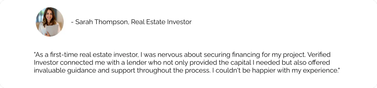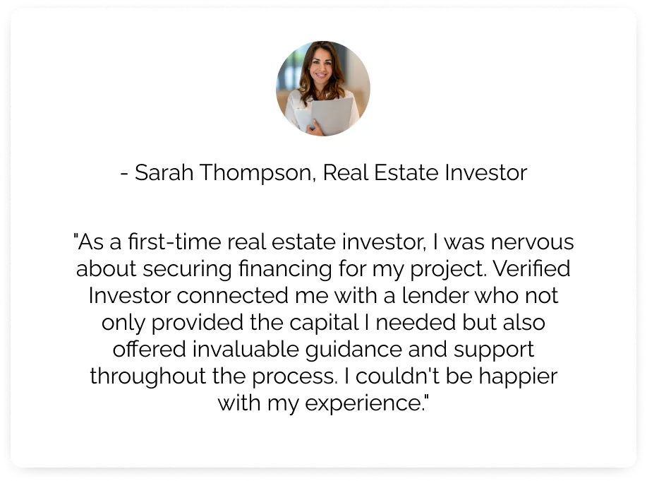 At Verified Investor, we're committed to providing the support and resources you need to succeed in your real estate investing journey. Whether you're a seasoned investor looking for your next project or a private lender interested in joining our network, our team is here to help.
